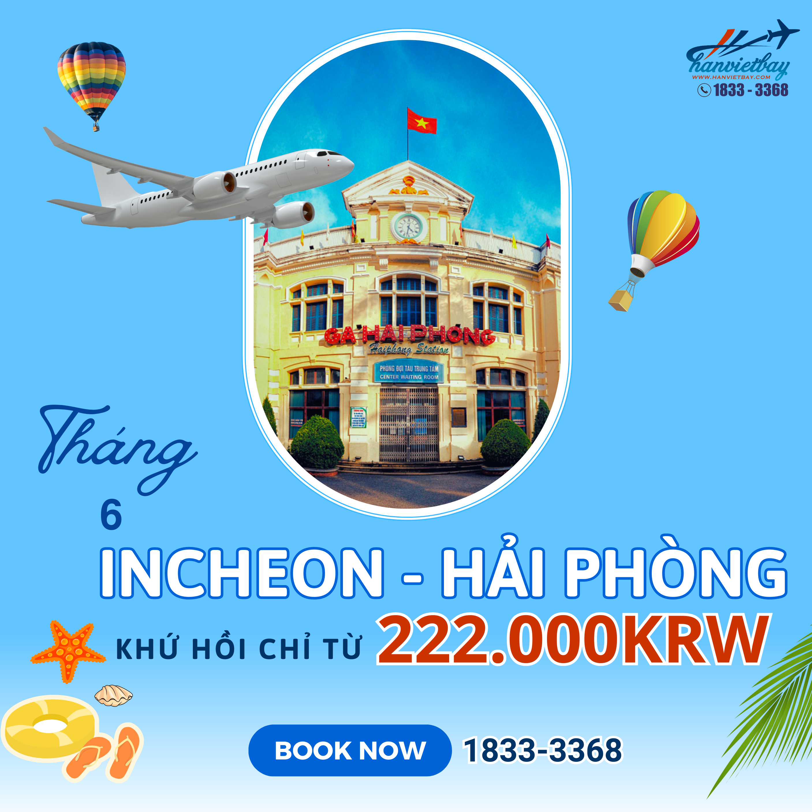Đặc biệt trong tháng 6 giá vé từ Incheon - Hải Phòng chỉ từ 222.000KRW. Cơ hội tuyệt vời là đây chứ đâu, vừa tiết kiệm chi phí lại có một kỳ nghỉ tuyệt vời, nhanh tay liên hệ Hanvietbay để book vé thôi!!