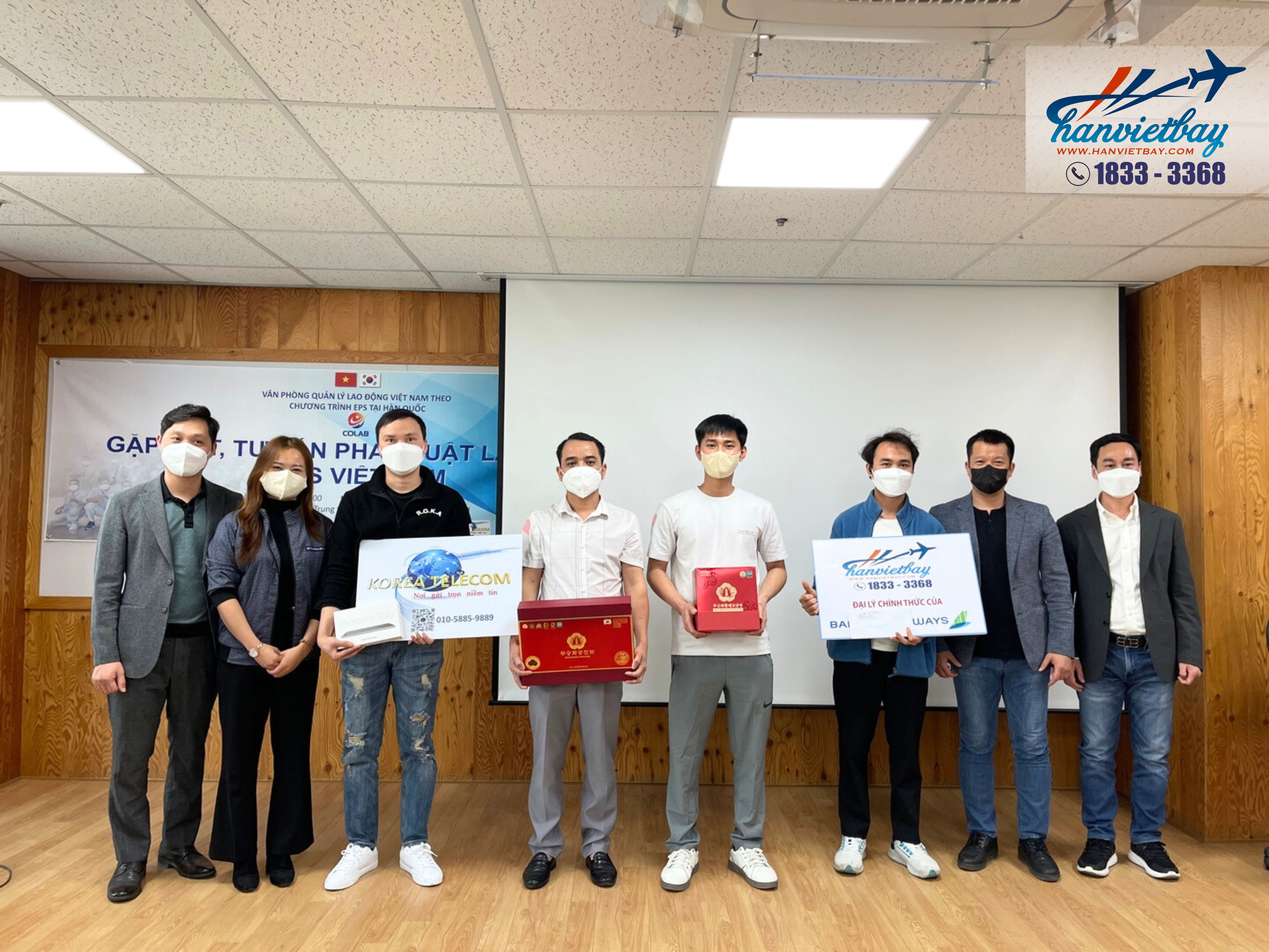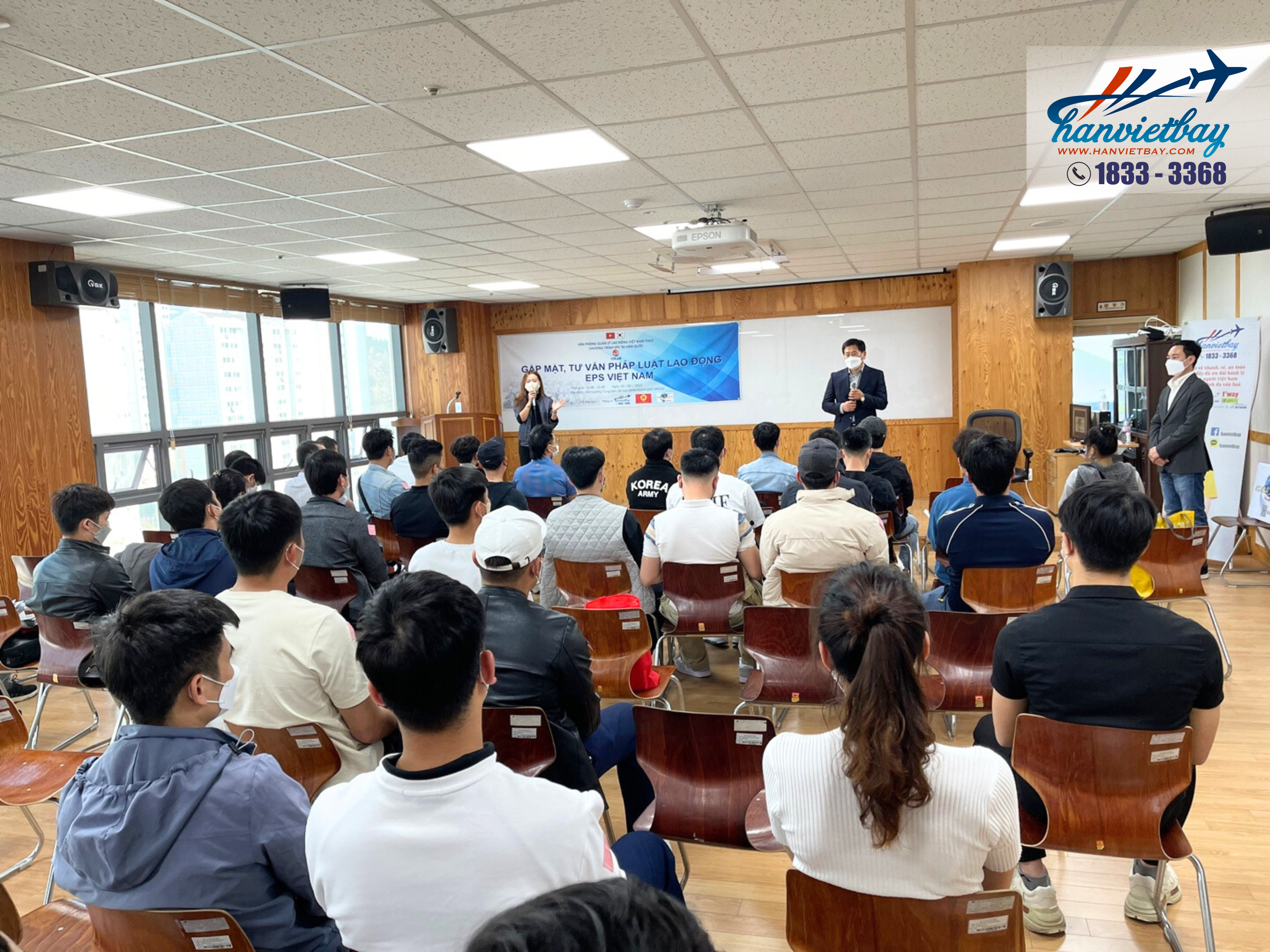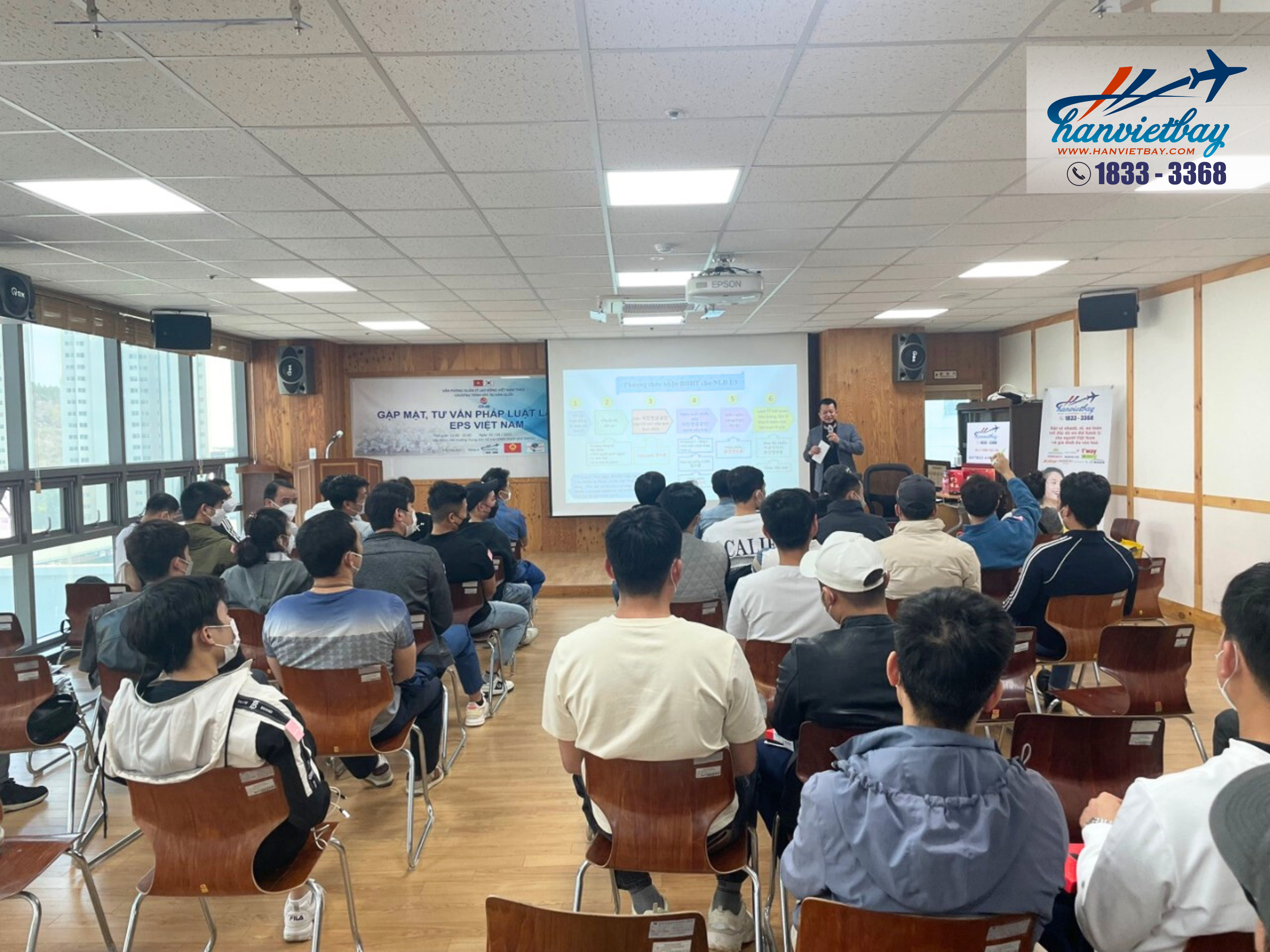 Đặc biệt Hàn Việt Bay đồng hành cùng văn phòng Quản lý lao động EPS tại Hàn Quốc và các đơn vị khác đã có buổi gặp mặt, giao lưu và chia sẻ những thông hữu ích cho các bạn lao động tại Hàn Quốc. Sự kiện có ý nghĩa quan trọng với những những người lao động tại Hàn Quốc giúp họ có thêm hiểu biết về các thủ tục hành chính, cập nhật những thông tin, quy định mới nhất dành cho người lao động.