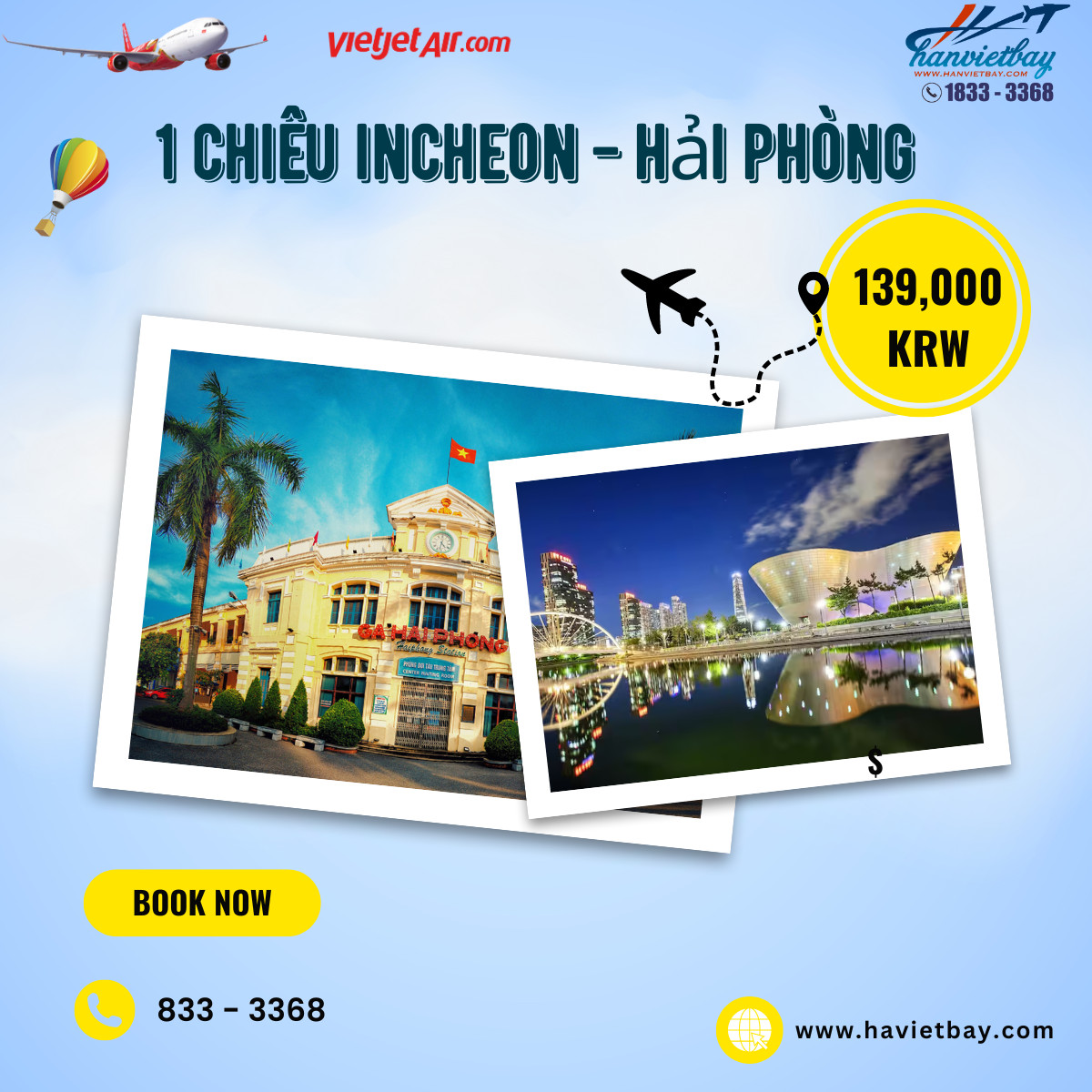 Một chiều Incheon - Hải Phòng tháng 3 chỉ từ 140.000KRW, mức giá tốt nhất trong hành trình Một chiều. Nhanh tay liên hệ Hanvietbay để được tư vấn các ưu đãi và được hỗ trợ mọi thủ tục nhanh chóng, tiết kiệm thời gian.