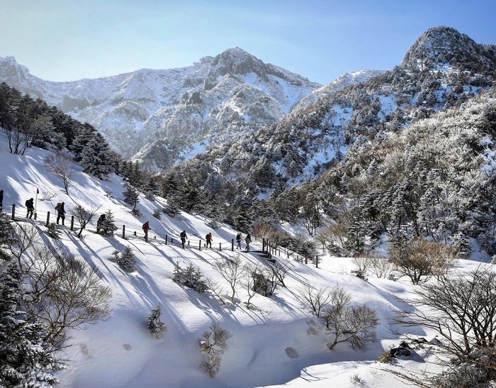 Nằm trong Công viên Quốc gia Deogyusan rộng lớn, dãy núi Deogyusan là điểm nổi bật thực sự giữa hàng tá khung cảnh tuyệt đẹp. Đi bộ lên đỉnh của những ngọn núi lớn như: Hyangjeokbong, Jungbong và Nam Deogyusan để được ngắm cảnh tuyết bao phủ.