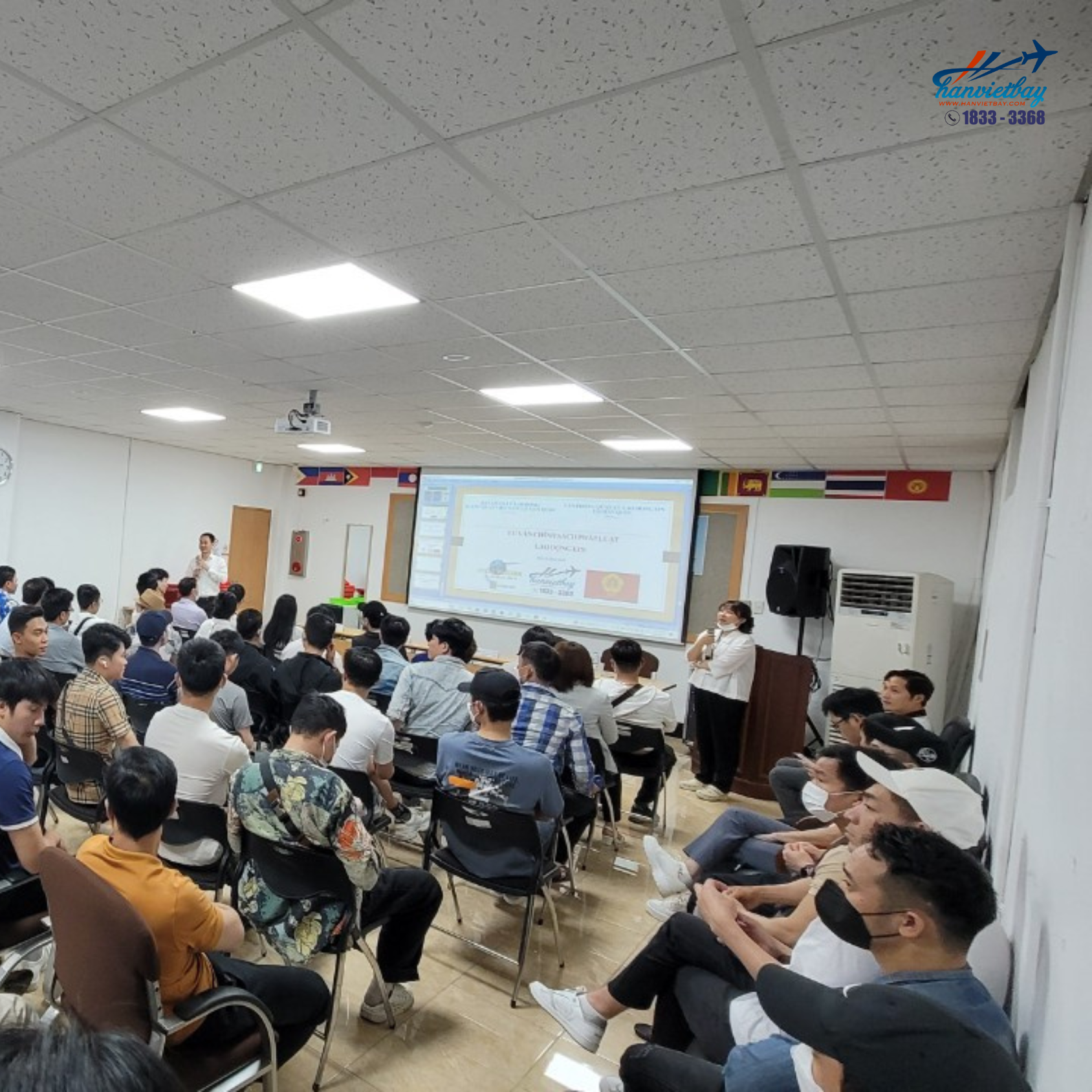 Về phía đại diện Hàn Việt Bay cũng có những chia sẻ, cung cấp thông tin hữu ích, giải quyết những thắc mắc cho người lao động Việt Nam làm việc tại Hàn Quốc từ đó giúp người lao động nắm được các quyền lợi lao động, các thủ tục giấy tờ khi bay về nước hay lưu trú ở Hàn Quốc.
