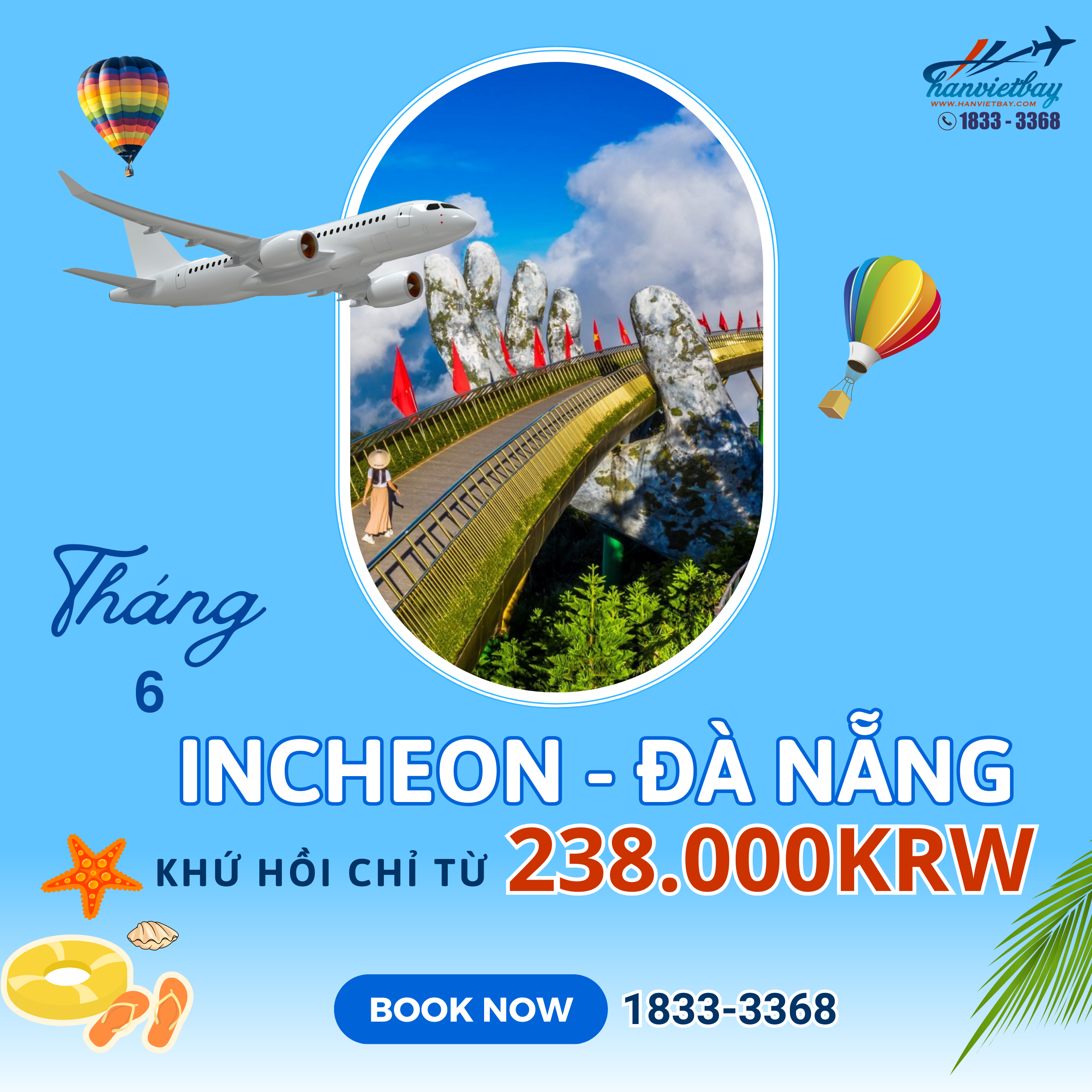 Đặc biệt trong tháng 6 giá vé từ Incheon về Đà Nẵng đang giảm sâu chỉ từ 238.000 KRW