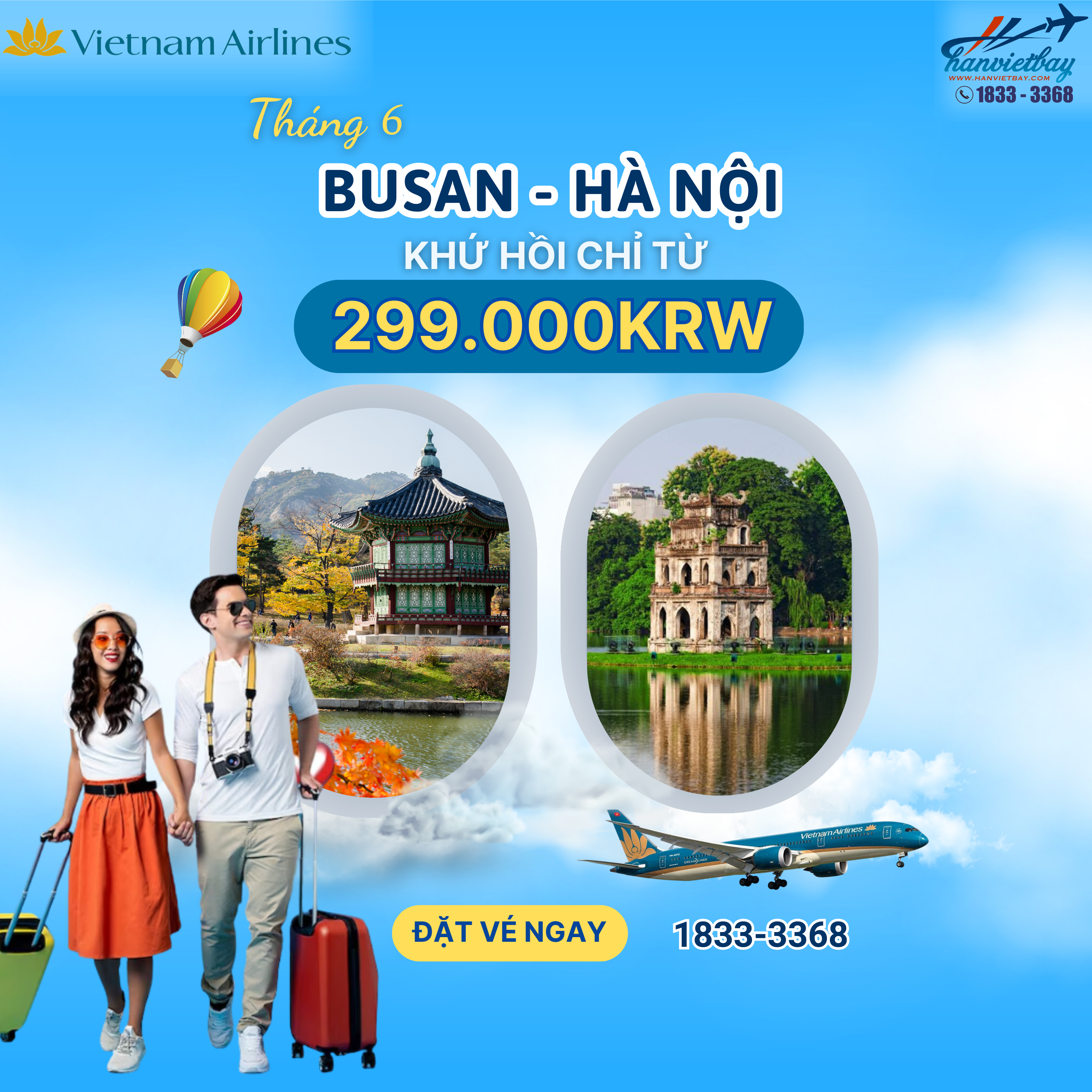 Bạn đã có dự định gì cho mùa hè này chưa? Vé Vietnam Airlines trong tháng 6 đang giảm mạnh, Khứ hồi Busan - Hà Nội chỉ từ 299.000KRW. Nhanh tay săn vé về VietNam tận hưởng kỳ nghỉ hè tươi mát thôi bạn ơi!!