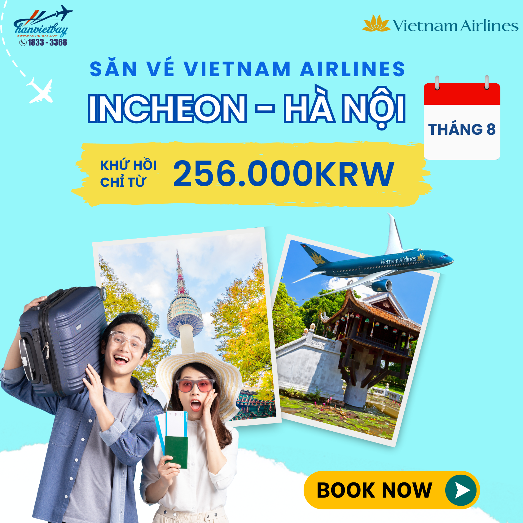 Khứ hồi INCHEON - HÀ NỘI chỉ từ 256.000KRW có 12KG xách tay + 20KG ký gửi. Nhanh tay săn vé thôi!