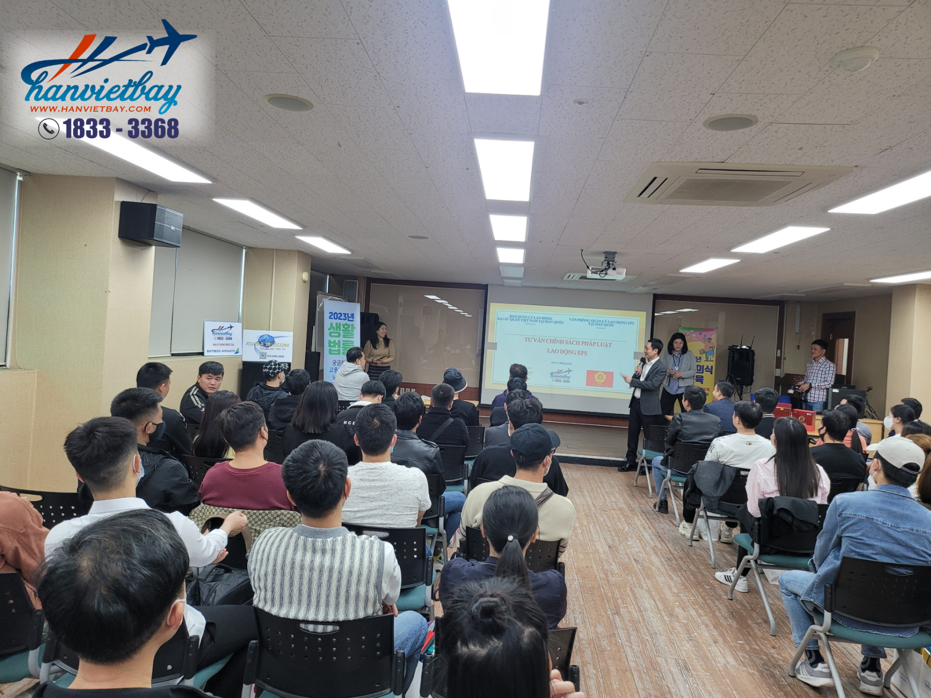 Đại diện Văn phòng EPS Việt Nam tại Hàn Quốc đã trực tiếp phố biến, cung cấp thông tin về các chính sách, pháp luật mới liên quan tới lao động EPS, chia sẻ kinh nghiệm về thủ tục hành chính, chuyển đổi visa của lao động E9 nhằm tăng cường công tác quản lý, hỗ trợ người lao động trong thời gian làm việc, sinh sống tại Hàn Quốc kịp thời.