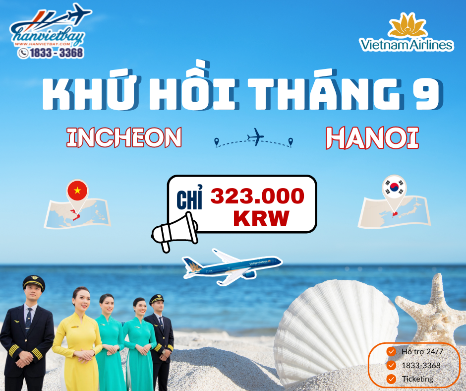 Giá vé tháng 9 - Hành trình khứ hồi - Incheon - Hà Nội ![?]()