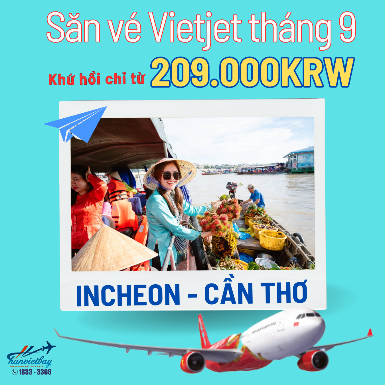 Săn vé từ Incheon về Cần Thơ trong tháng 9 nhận ngay ưu đãi khủng của Vietjet. Nhanh tay liên hệ Hanvietbay để nhận ưu đãi thôi