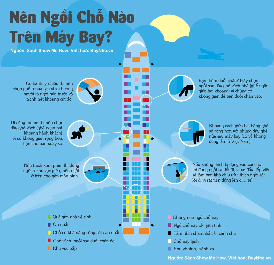 - Hành khách ngồi tận cùng đuôi máy bay sẽ có tỷ lệ thoát chết cao ngang với người ngồi khoang VIP là 65%, thậm chí ngồi ở đuôi còn may mắn hơn rất nhiều.