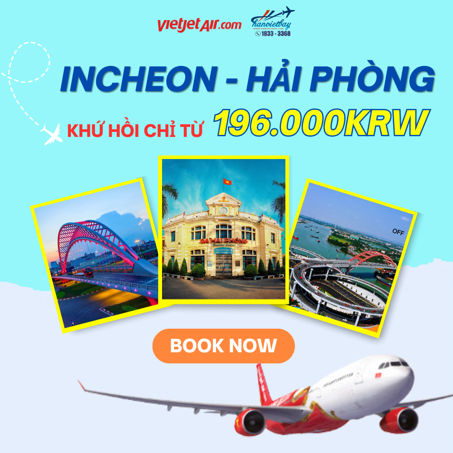 Khứ hồi INCHEON - HẢI PHÒNG giảm mạnh chỉ từ 196.000KRW.